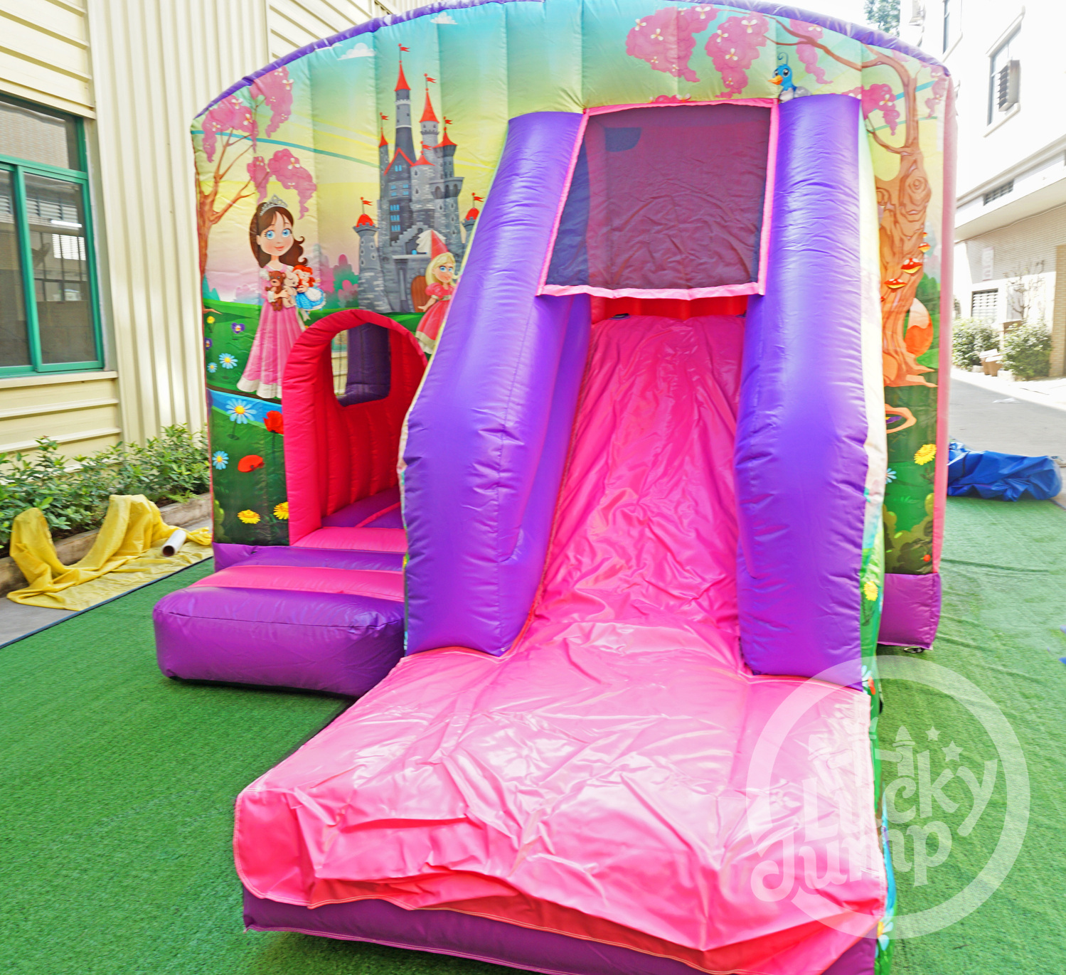 모든 경우에 대한 슬라이드와 함께 다양한 판타지 캐슬 테마 바운스 하우스